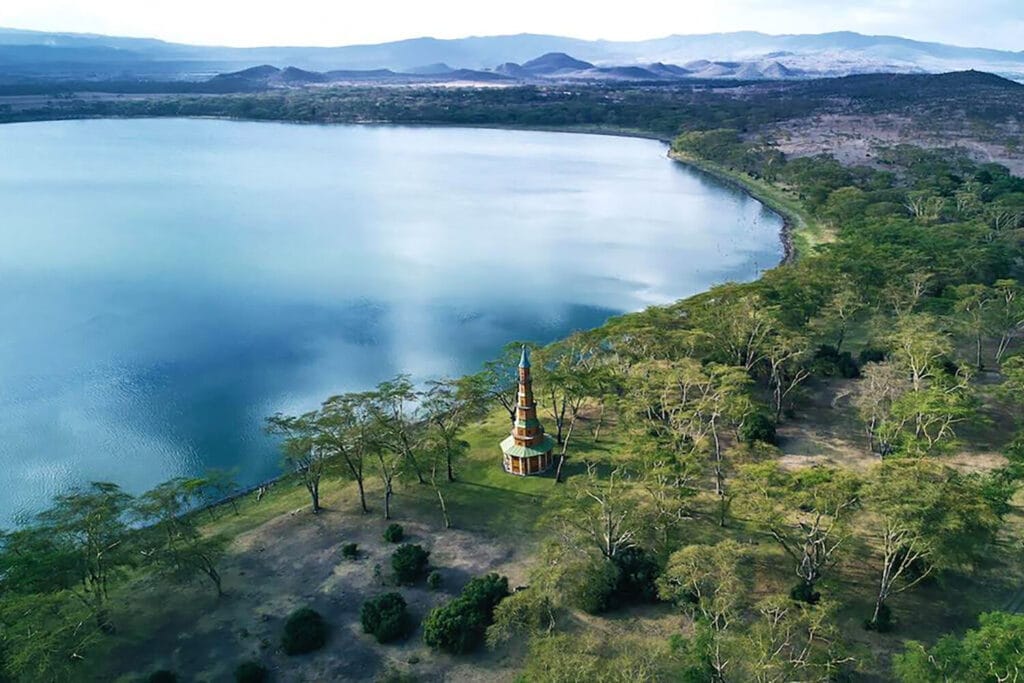 One of East Africa’s most gorgeous and unusual private retreats, Dodo’s Tower is a stunning 8-storey, 120-foot, cypress-clad folly which blends in perfectly with the surrounding Acacia trees and lake shore scenery. Decorated and furnished in lovely, harmonious and sophisticated style, it features European turn-of-the-century furniture, antique Russian linens, polished floorboards, wooden panelling and beautiful original artwork.
