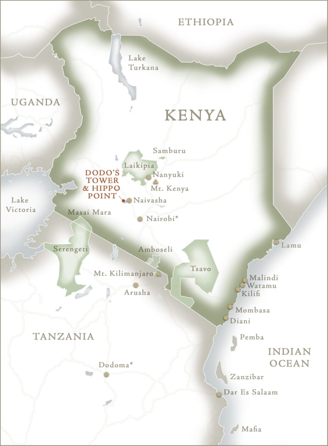“The Tower (‘Dodo’s Folly’) is a one-of-a-kind structure and stands on an isthmus between the two lakes. It is elegantly furnished and the second floor is a wonderful gathering place open to a veranda completely encircling the tower – from here we were able to enjoy afternoon tea and observe the animals that run freely on the property. Staying at Hippo Point is referred to by the owners as a ‘slow safari’ as one is able to view many animals on property without needing a vehicle. Walks are guided by Bernard who is extremely pleasant and accommodating and a wealth of information about all the flora and fauna. The bird watching is superb and walks around the estate yield endless up-close-and-personal viewing opportunities of giraffe, zebra, hippos, warthogs, monkeys, and more. Our excursions to Hell’s Gate and Elsamere were worthwhile, but the real joy of Hippo Point is remaining on the property and being taken care of by the amazing staff. The meals were delicious and healthy, and served with a gracious elegance that made the experience truly wonderful. Sundowners and lunches are served in various locations around the property which made every meal and cocktail hour an adventure.”